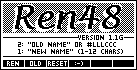 REN takes two strings: the name of the command to rename (built-in or already renamed) and the new name. The changes are automatic: it does an implicit NEW. I have limited the length of the new name to 12 chars because of memory constraints; on the G version, each additional char would increase the library’s size by 600 bytes – keep in mind that REN (and ->ROOT) needs 12Kb of available memory to run. Anyway, the longest built-in names on the HP48 are PARAMETRIC and PARSURFACE, ten letters.